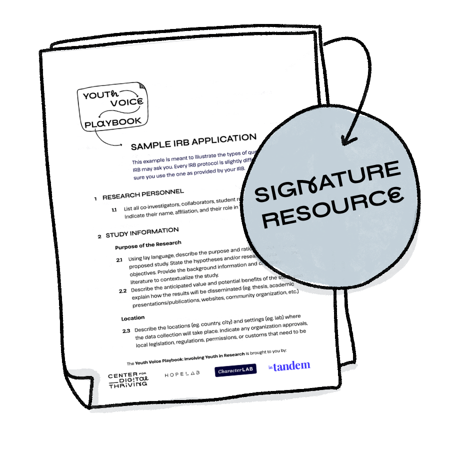 Regardless of whether your project requires formal external review by an IRB, you should create an internal review system to make sure your engagement with youth is set up to be safe, responsive, and engaging. Below are a few principles and important considerations to keep in mind.