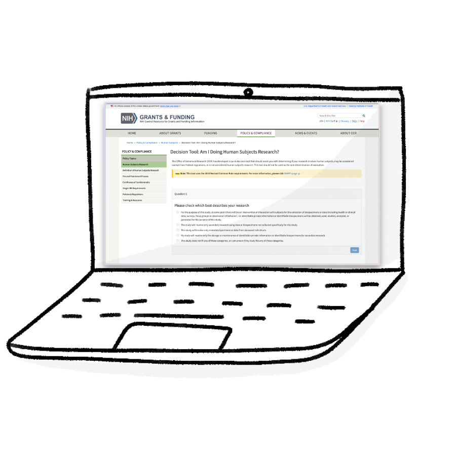 This tool might be useful to you if you are trying to answer that tricky foundational question of whether or not your project actually counts as research, and therefore what sort of oversight will be required.