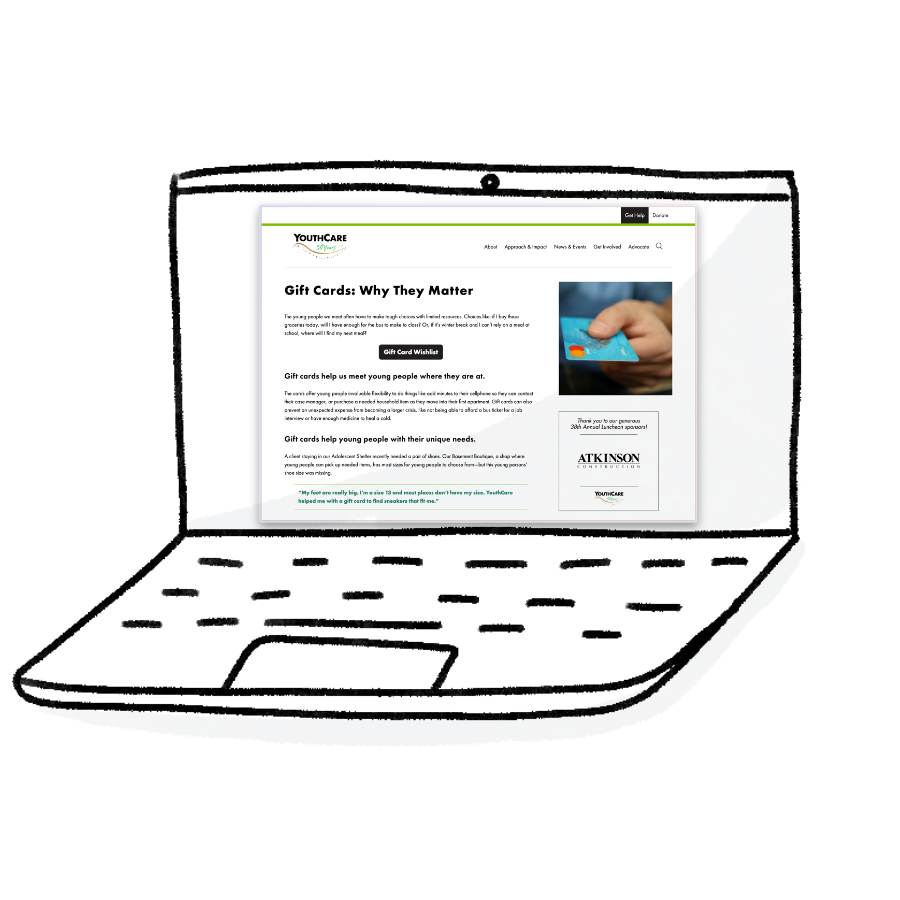 If you are going to compensate youth directly, consider various options. For example, we often use online gift cards as a way to compensate youth for their time. This allows us to minimize the amount of personal information we collect. Sometimes we’ve given gift cards directly to things like Doordash or Apple; other times we’ve given Visa or Mastercard gift cards that can act like cash (though there are usually some restrictions on where youth can use them). More information about some of these online gift cards in the Resources section below.